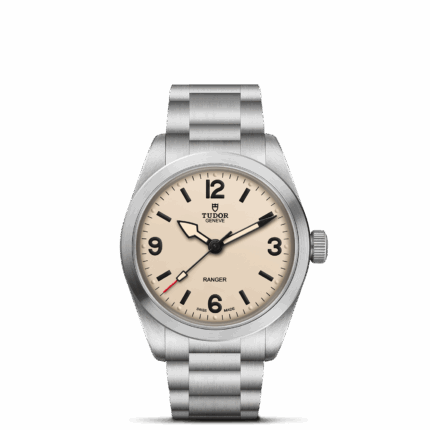 Brazalete de acero con tres eslabones y un cierre desplegable con el cierre de seguridad TUDOR «T‑fit»