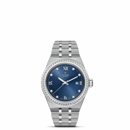 Brazalete integrado de acero de cinco filas (eslabones externos y centrales satinados, y eslabones intermedios pulidos), con cierre desplegable y cierre de seguridad