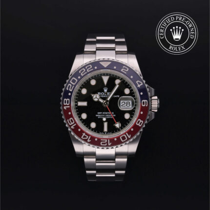 Presentado en 1982, el Oyster Perpetual GMT-Master II cuenta con el emblemático disco de bisel bicolor, —actualmente hecho de cerámica de alta tecnología— y muestra la hora en dos husos horarios simultáneamente. Es el descendiente directo del GMT-Master original presentado en 1955, que fue adoptado rápidamente por pilotos transatlánticos como instrumento de ayuda a la navegación.